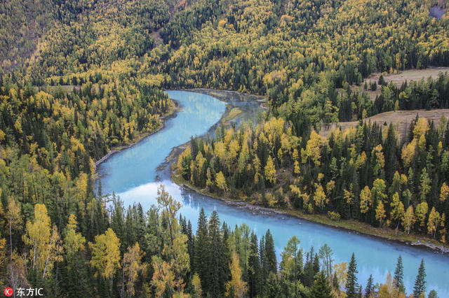 新疆喀纳斯风景区的喀纳斯湖、月亮湾、卧龙湾、神仙湾等景点山光水色,五彩斑斓,宛如童话世界令人倾心赞叹。喀纳斯是蒙古语,意为“美丽富饶、神秘莫测”,这里因喀纳斯湖及周边雪山、草原、白桦林共同组成的秀美风光闻名遐迩,被誉为“东方瑞士、摄影师天堂”。 今年金秋时节,白桦林一片金黄,银色的雪山,翡绿的湖泊,好似油画一般美的让人心醉。